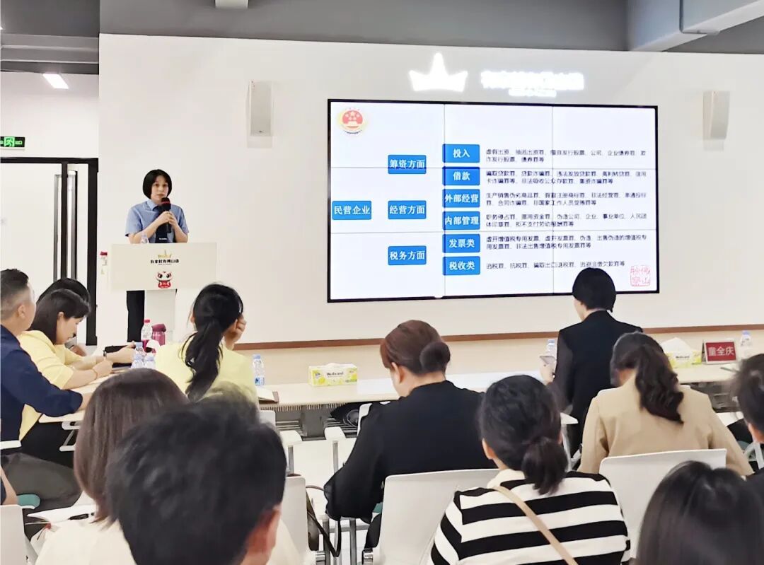 此外,企业在依法规范经营、知识产权保护以及劳动权益保障等方面的法治需求强烈。在办案之余,黄荣荣主动走进企业,精准锚定普法方向,通过制作普法课件、设计宣传册、创作普法视频、举办专题讲座等形式,将企业常见法律风险案例化、通俗化,助力企业提高防范意识,增强员工法律意识。