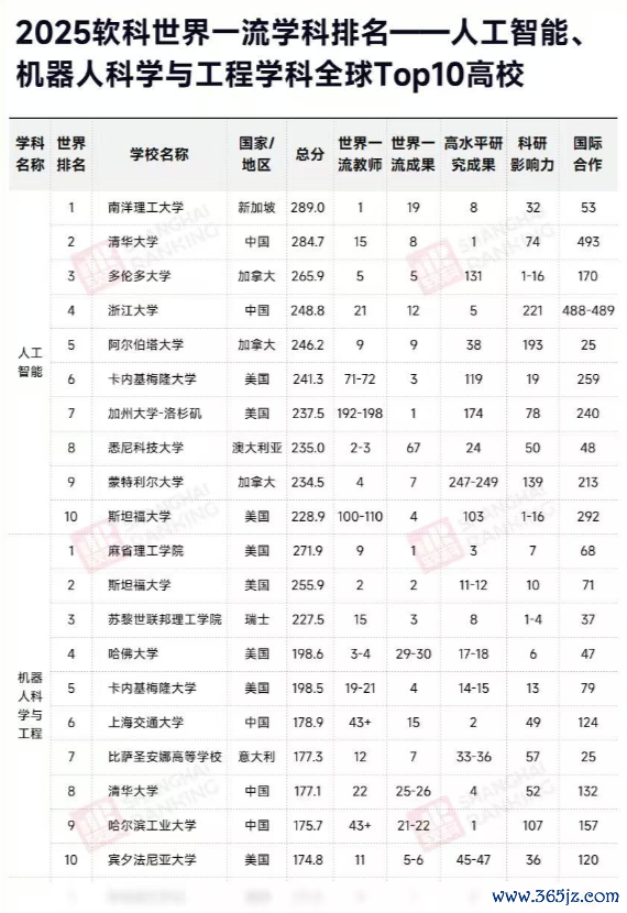 软科今年新增的人工智能学科排名显示,全球共有400所高校上榜,其中,南洋理工大学、清华大学、多伦多大学位列前三;清华大学、浙江大学、哈尔滨工业大学位居国内前三,北京大学、西北工业大学、华中科技大学、南方科技大学、上海交通大学、北京航空航天大学、西安交通大学位列前十。