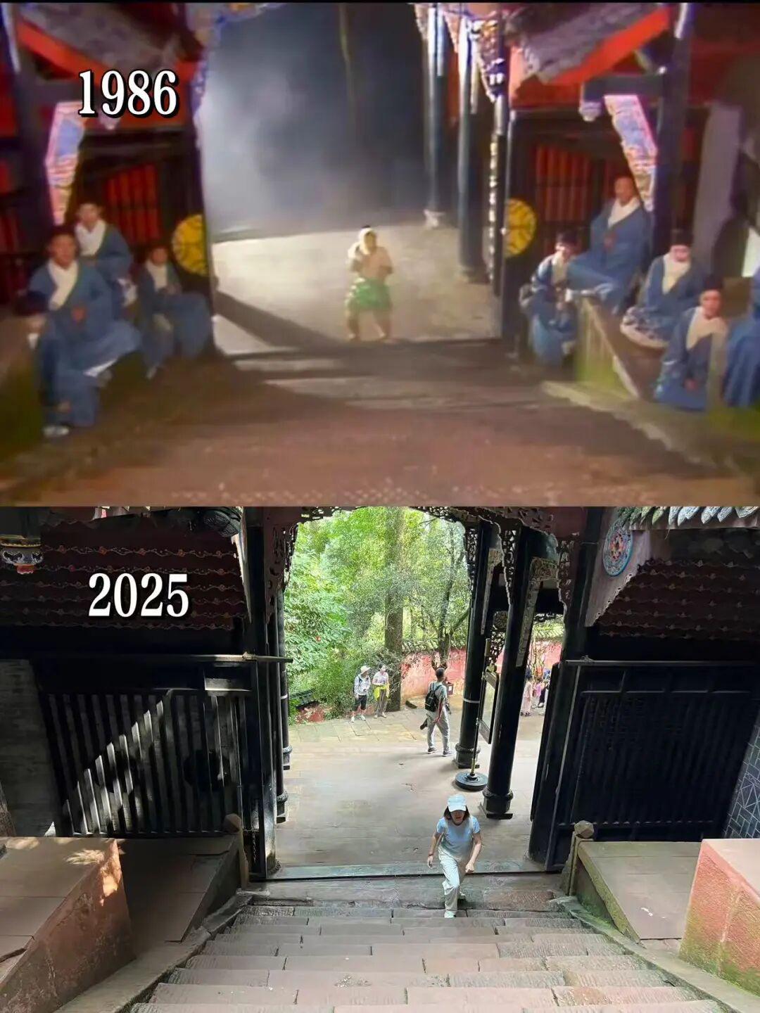 上山之后我就一直在寻找西游记的场景,边走就边感叹,40多年前摄制组要带上这么多设备器材和衣服,爬这么远的山路来拍摄,太不容易了。