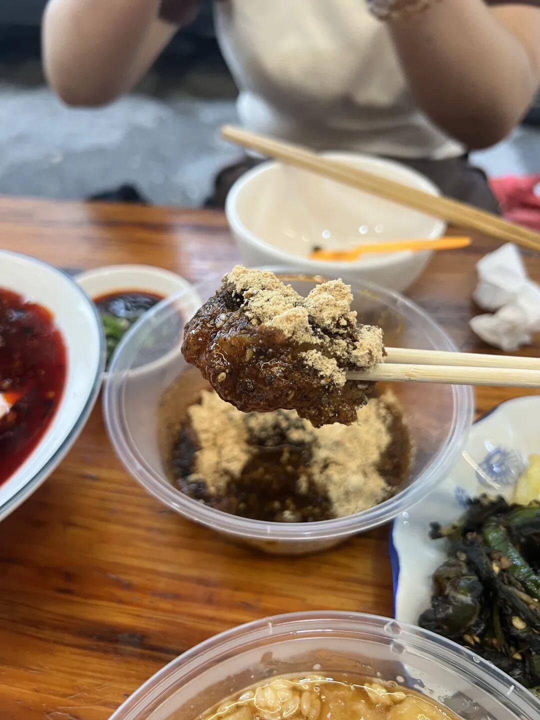 吃罢饭,搭子说买点卤肉回去给家人夜宵,她买完给我尝了一片,虽然很胀了但是还是眼前一亮,就是小时候那种本味,没有过多的香料、色素,但是肉里丝丝扣扣都很入味,重点是不咸,于是迅速打包了一大包回家,第二天全家都吃得相当满意(忘记拍照了)。