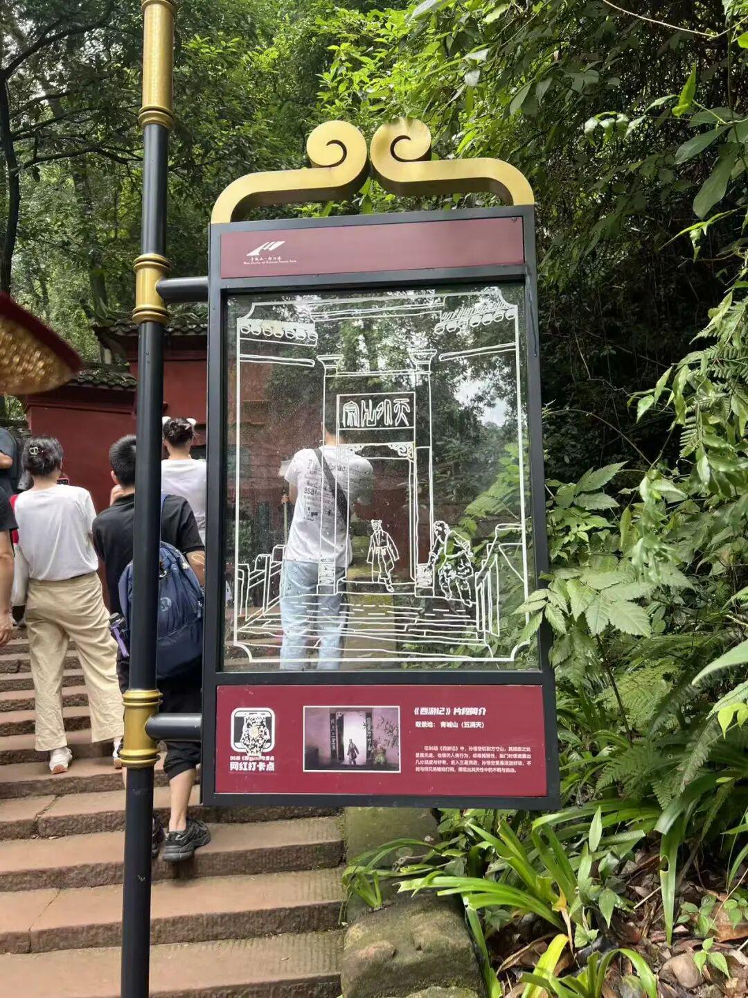 不得不说青城山景区现在确实紧跟热点,不少地方都有《西游记》的打卡牌,动作方向让你一次复刻明白。