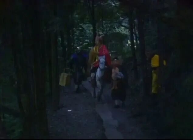接着说,孙悟空一怒推倒人参果树,闯了祸师徒四人准备连夜出逃,夜色中这段小路就是天师洞出后门往上清宫的路上。