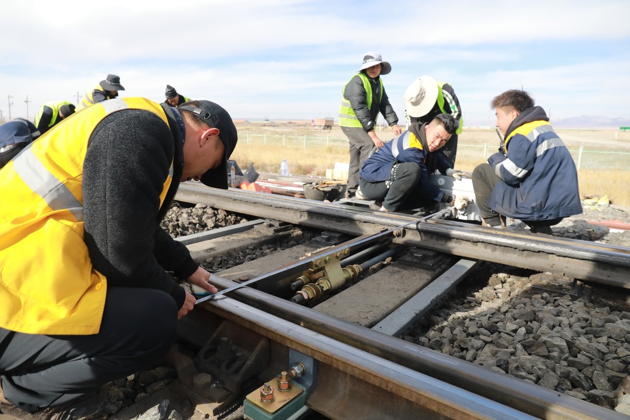 当天,来自西宁电务段约40名干部职工在此集结,利用3个小时的“天窗”时间,将哈尔盖站内东咽喉27号和13号道岔进行更换。