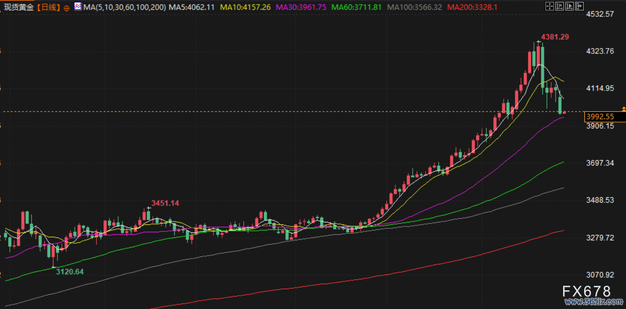 汇通财经APP讯——周二(北京时间10月28日),现货黄金交投于3993.84美元/盎司附近,金价周一下跌超3%锦富优,因贸易紧张局势解冻的迹象削弱了黄金的避险吸引力,同时市场参与者在等待美联储本周的利率决定;美原油交投于61.28美元/桶附近,油价周一小幅收低,因OPEC的石油增产计划再次盖过了达成贸易协议框架的希望,以及美国对俄罗斯重新实施制裁的影响。